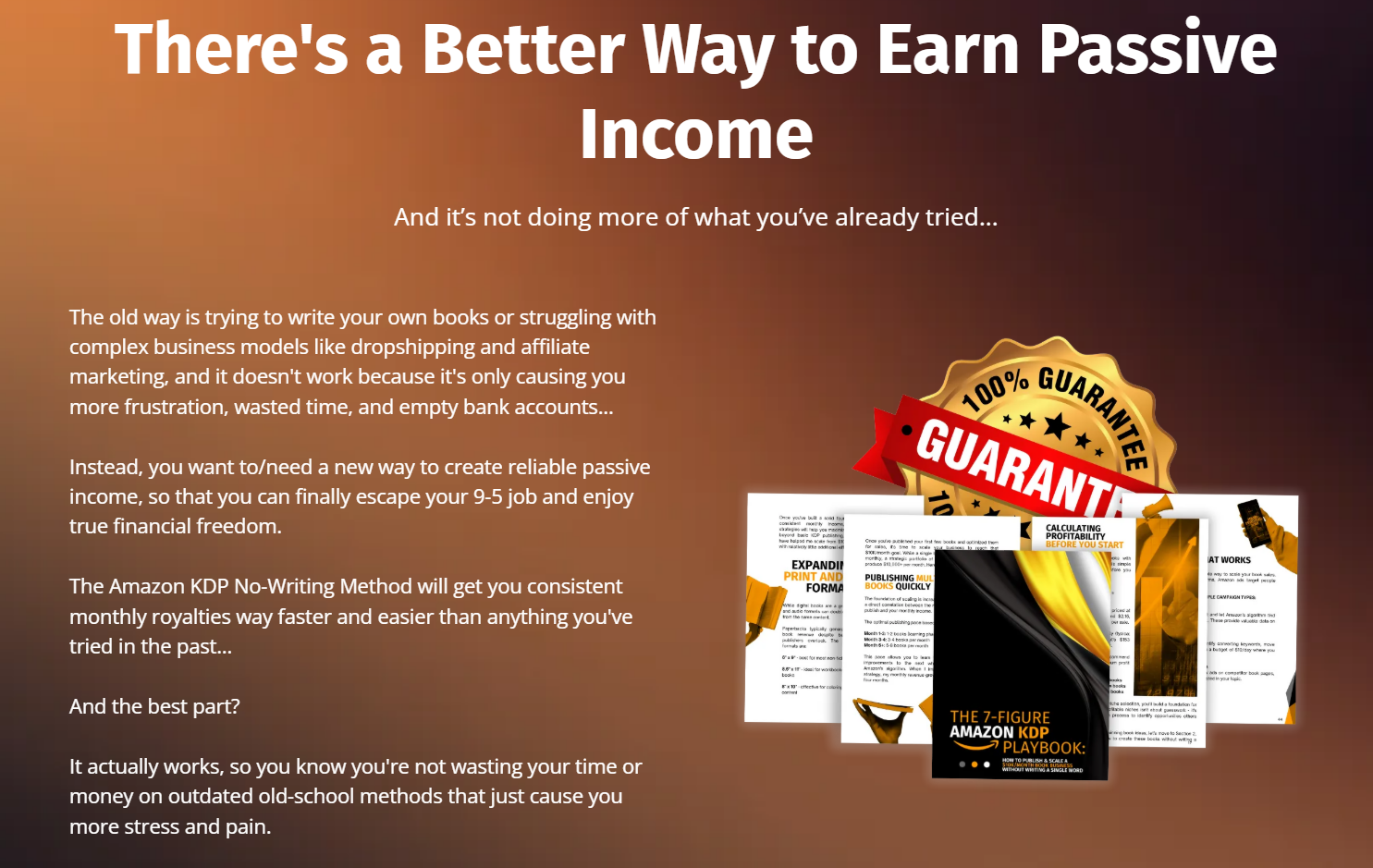 服务强调通过亚马逊KDP实现被动收入的可能性,用户只需前期投入时间和精力创建书籍,后续可通过亚马逊的按需印刷(Print-on-Demand)服务自动处理印刷和配送,无需自己管理库存。为寻求额外收入来源或希望摆脱传统工作模式的用户提供了一种低成本、低风险的创业方式,书籍一旦上架即可持续产生收入。