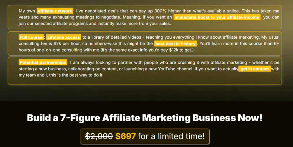 - 模块4:流量获取,介绍吸引目标流量到联盟推广的方法,包括自然搜索、付费广告、社交媒体平台和邮件营销等。课程强调能转化为销售的高质量流量,而不是普通的网站访客。