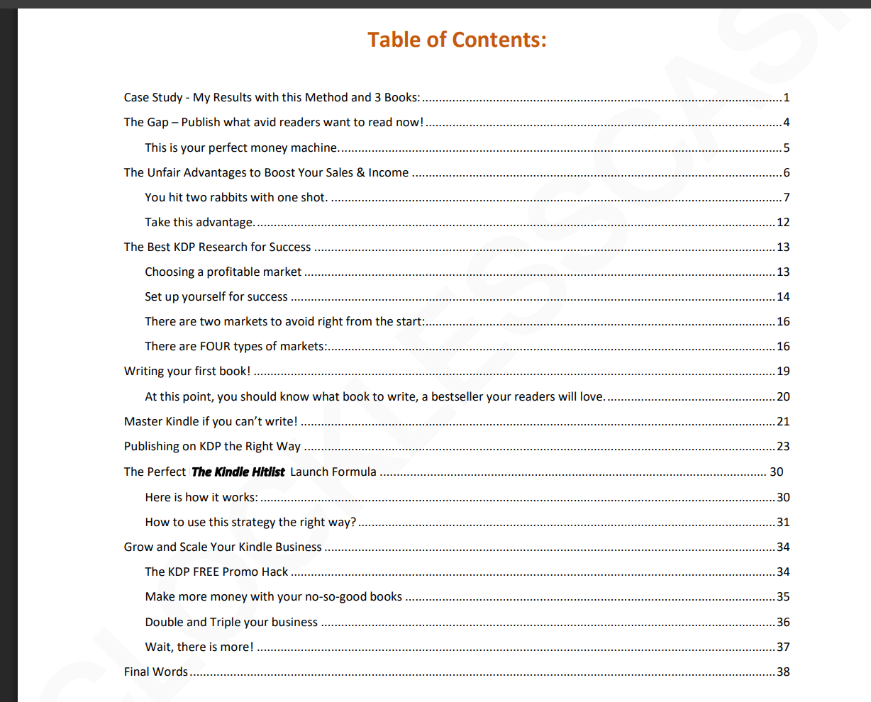 为啥这方法管用呢?因为它能解决让你一直没钱赚的所有痛点。消除你的困惑,你不需要花哨的书籍设计技能,不需要电子邮件列表,不需要亚马逊广告,也不需要出几百本书来“碰运气”。你只需要找对目标、用对策略、按下正确的按钮,而这就是《The Kindle Hitlist》能给你的。