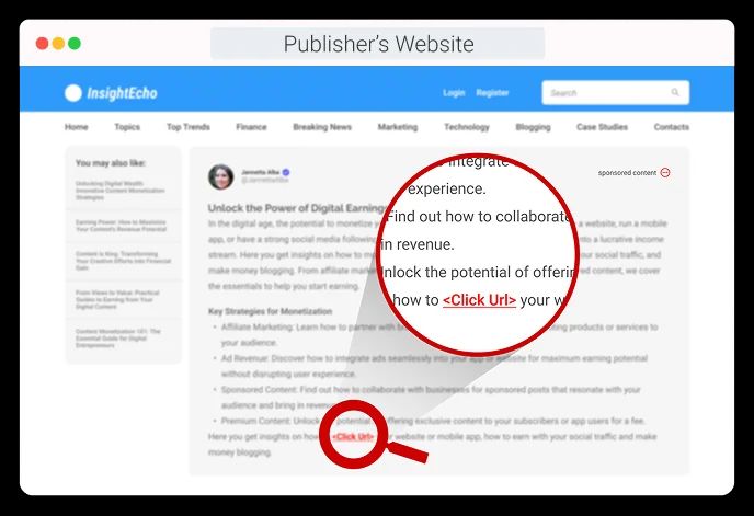 - 原生广告:放在着陆页或网站上时,看起来像博客文章或原创内容。这种广告形式转化率高,很赚钱。