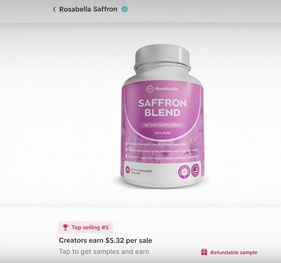 选了一款叫Rosabella Saffron的产品。 卖点是它有一种叫Croin的稀有抗氧化剂,好处很多,切入点也不少。这个affiliate选了一个说它能清洁肝脏、有益肝脏健康的角度。产品的卖点可以通过Chat GPT上做了很多深入研究,比如问“我要推广的xxx产品有什么好处?”。