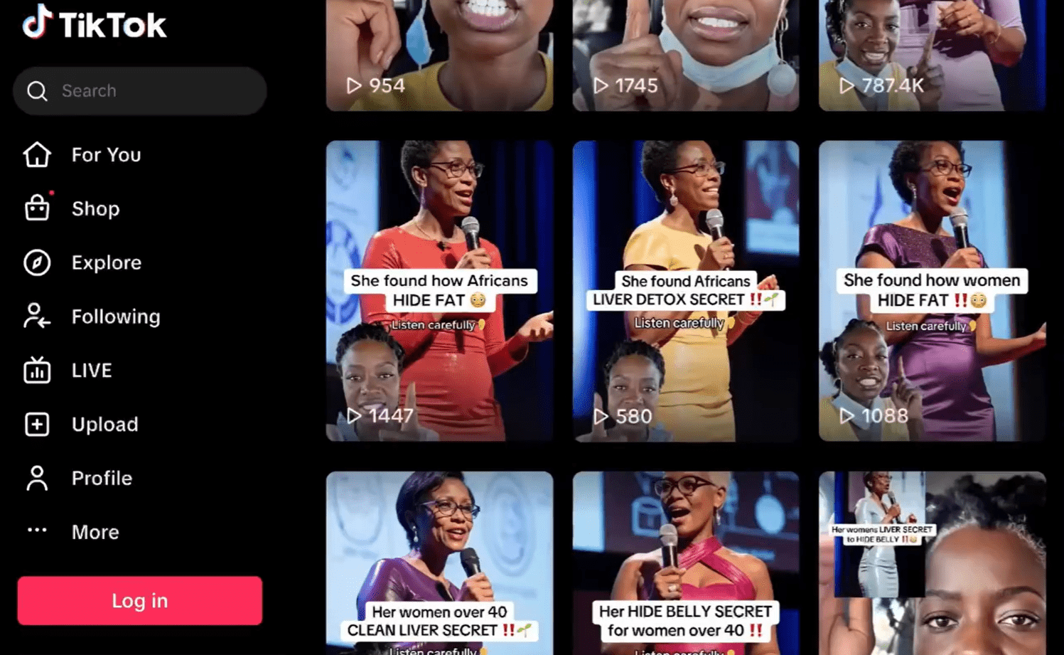 视频里有个女士指着上方、还有个女士说话,是为了增加好奇心和吸引力,让观众觉得继续看会有收获。这个视频快3分钟,到1分15秒才开始说产品成分,还没提品牌。它好几次有500万播放量,很多次有200万播放量。