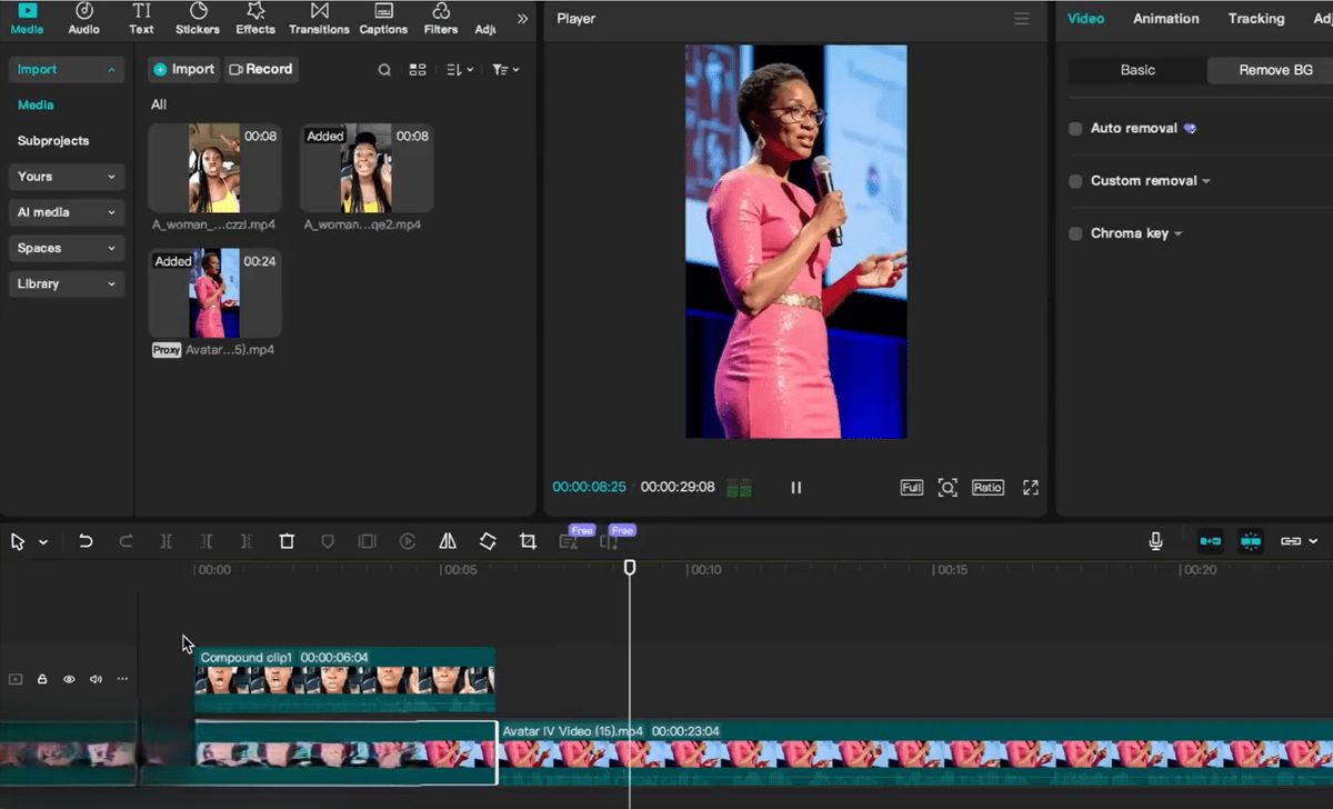 最后把视频导入CapCut编辑,去掉背景、调整大小、加定格画面。自动加字幕,再稍微编辑一下,加快语速、去掉停顿。