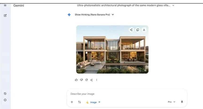 几秒后Gemini就会用Nano Banana Pro生成第二张图,你能看到施工已经开始,改造的变化很明显。