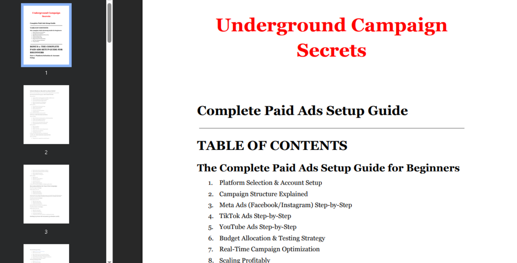 - 核心内容:联盟营销付费广告全平台搭建与优化指南,覆盖 Meta(Facebook/Instagram)、TikTok、YouTube 三大核心平台,从账号搭建、战役结构、定向、创意、优化到规模化盈利全流程。