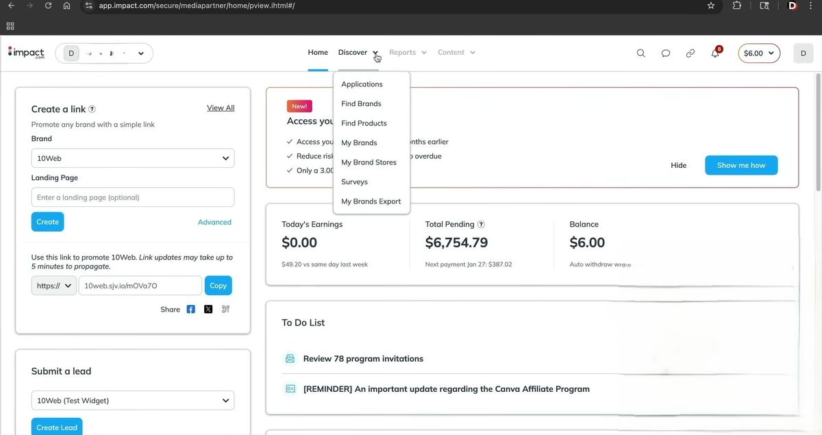第一个是impact.com,这个网站集合了很多不同的联盟项目,你在一个平台就能申请加入很多项目。